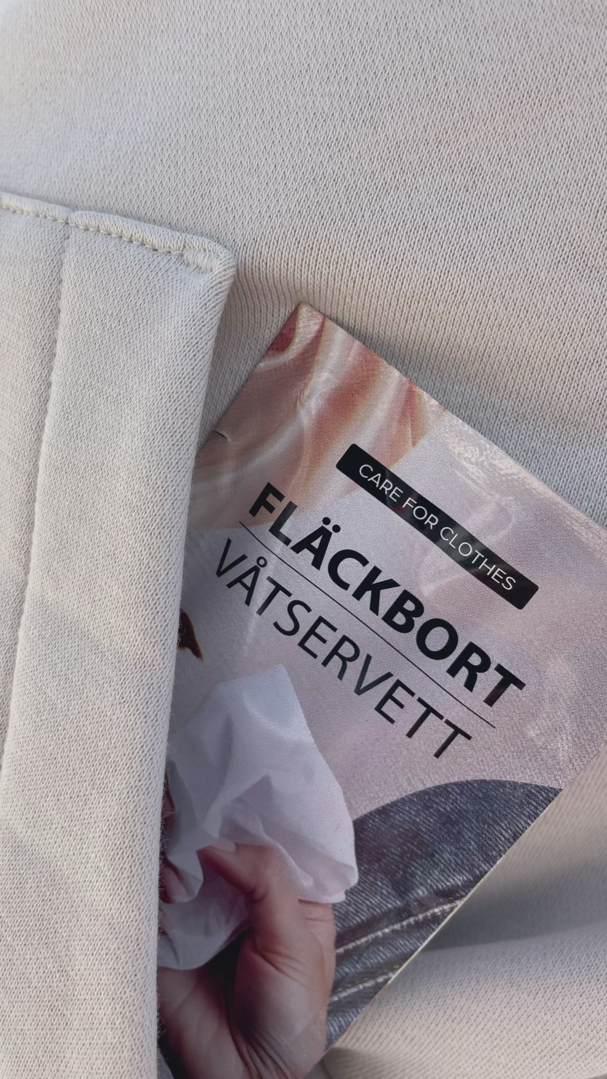 Fläckbort våtservett 5 st, tar enkelt och snabbt bort fläckar utan tvätt. Kan användas på känsliga material som ull, kashmir och siden. Perfekt för att ta bort alla typer av fläckar på textilier, kläder, möbler, mattor, bilklädslar, barnvagnar mm.