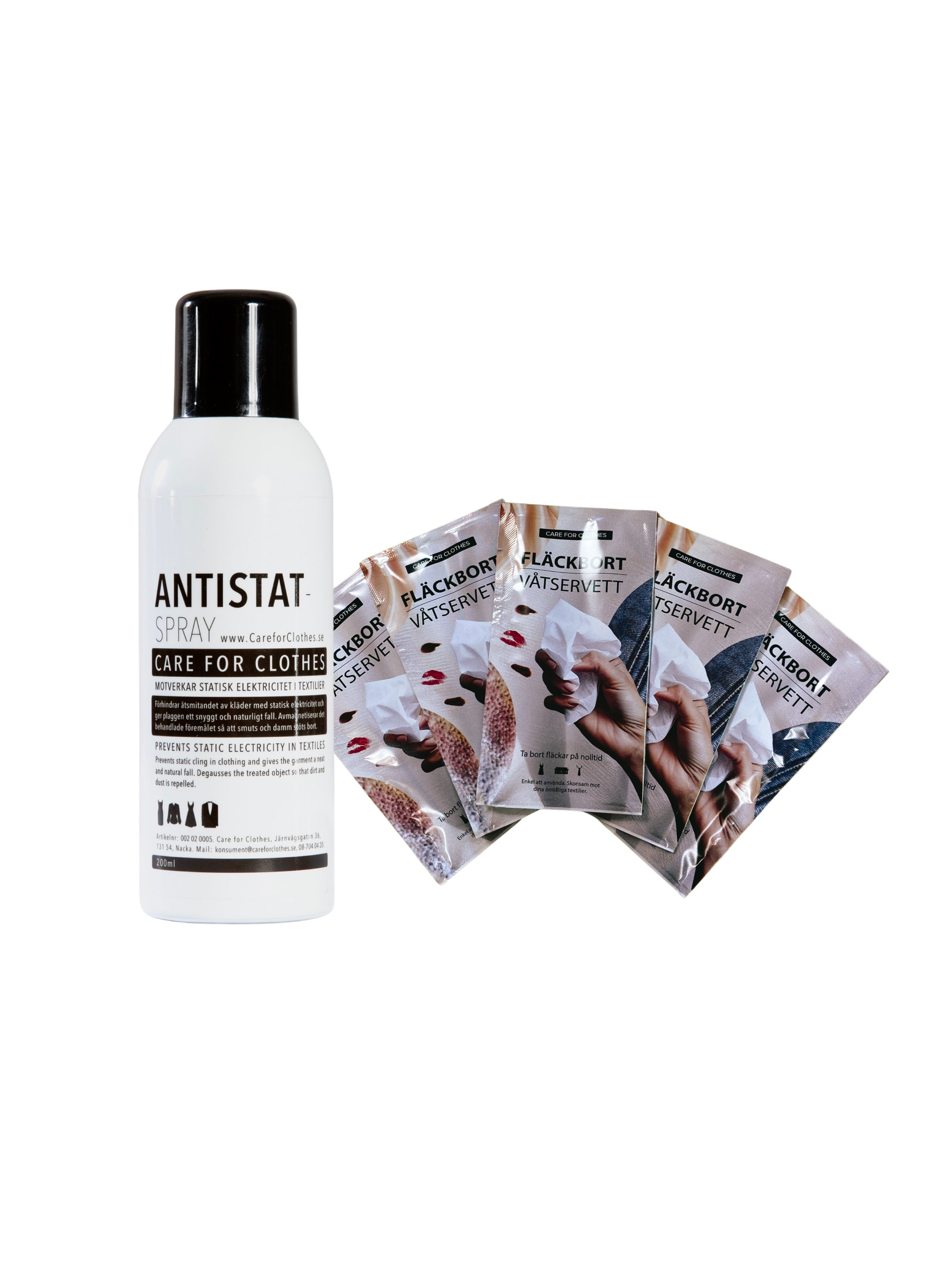 1 Antistatspray + 5 st Fläckbort våtservetter